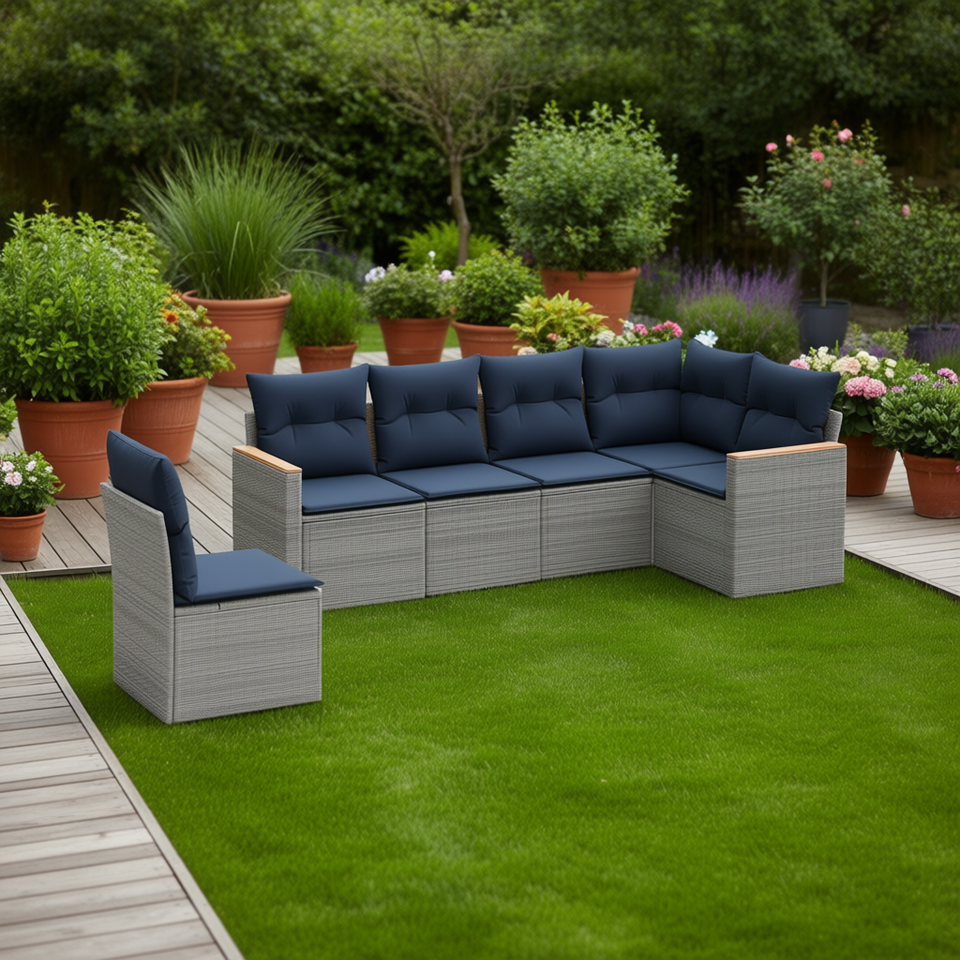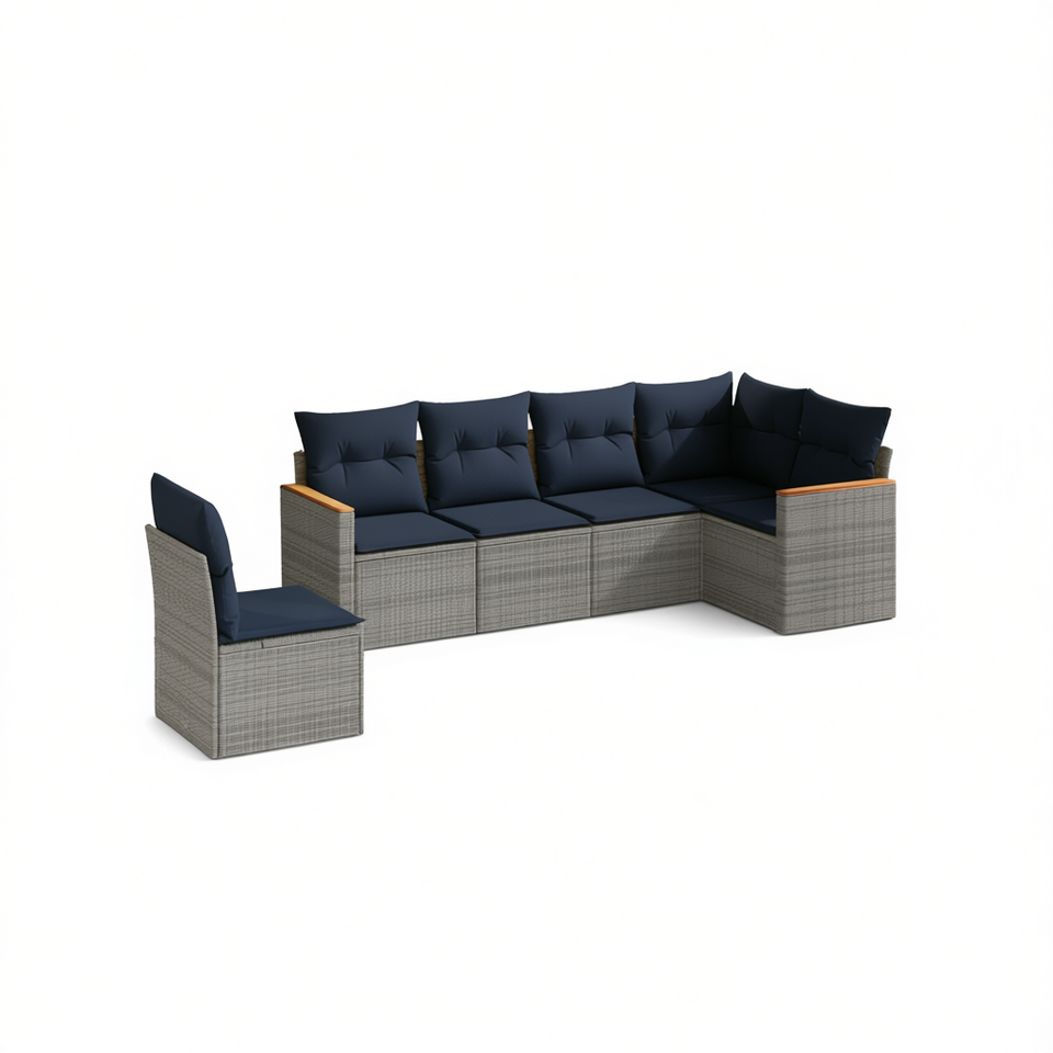 Ensemble de canapés de jardin en polyrotin gris avec coussins, 6 places, mobilier d'extérieur, design contemporain