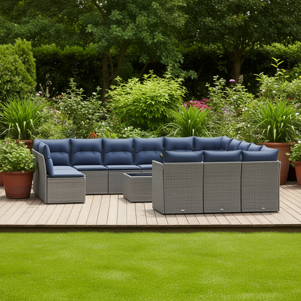 Ensemble de canapés de patio en polyrotin gris avec coussins, mobilier de jardin, sièges d'extérieur, capacité de plus de 10 personnes, design contemporain