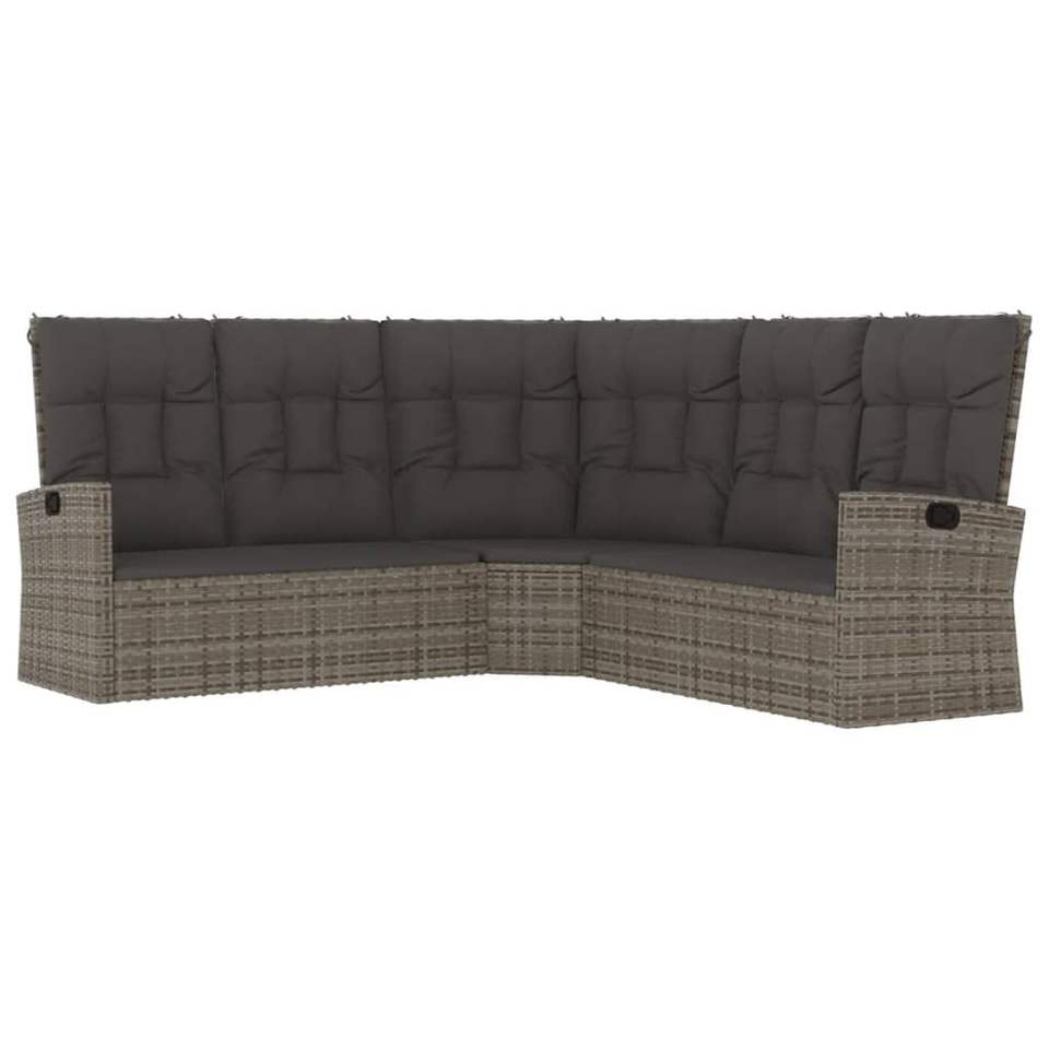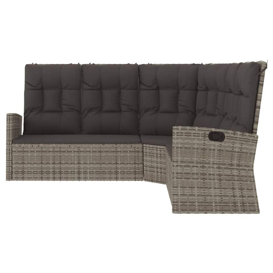 Canapé d'angle inclinable en rotin poly gris avec coussins