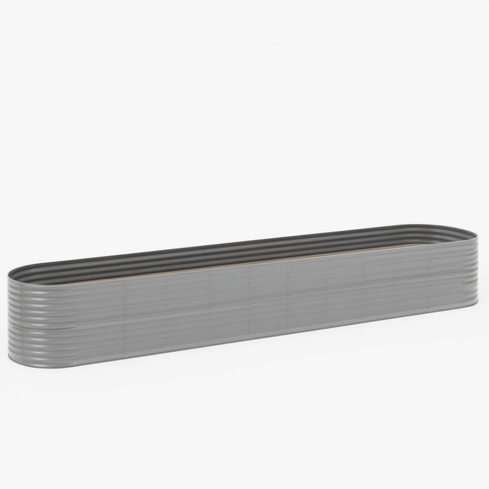 Jardinière surélevée en acier thermolaqué gris, elliptique, 173,2 x 31,5 x 26,8 pouces, style rustique, pour fleurs et plantes vertes