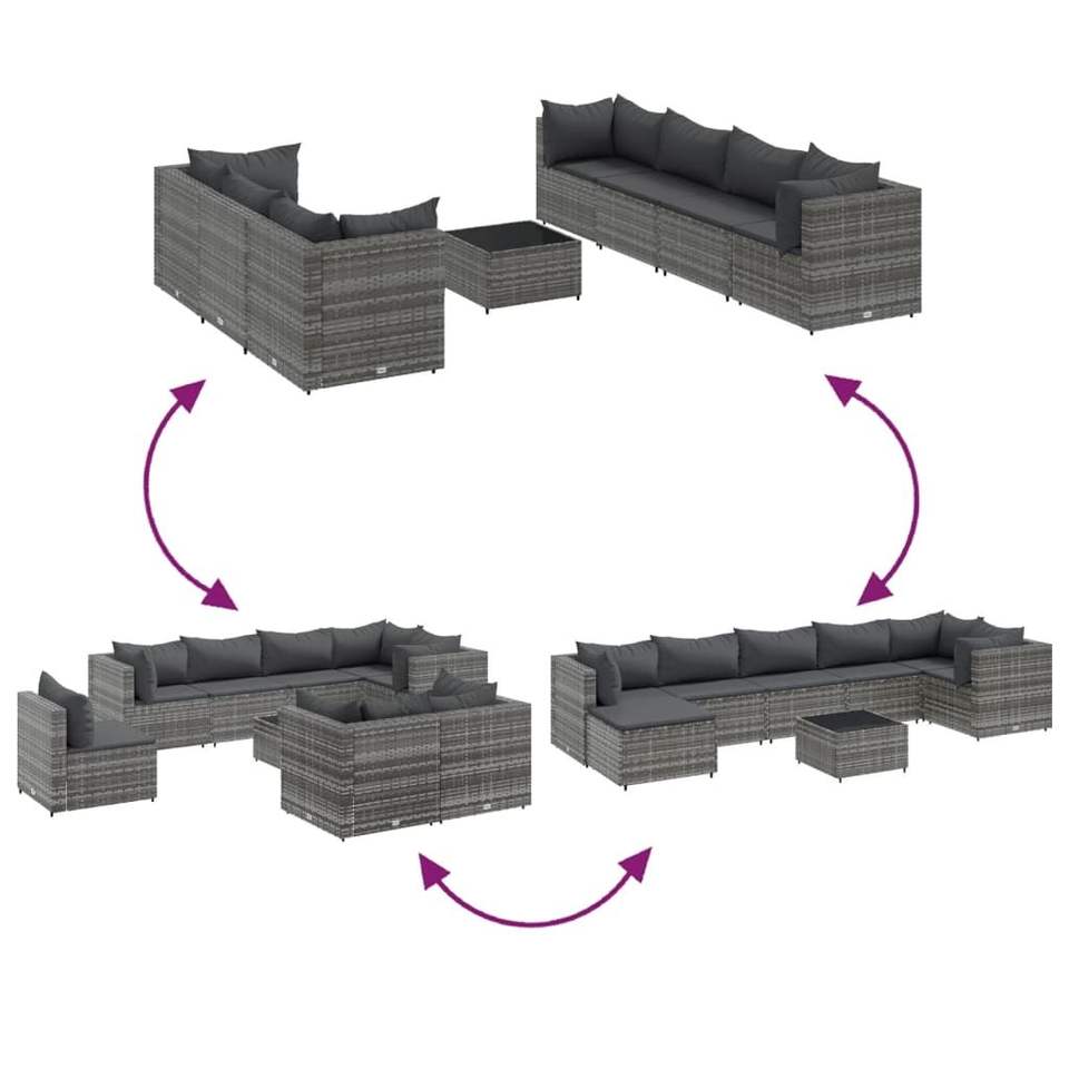 Ensemble de salon de jardin en rotin gris 7 pièces, mobilier de jardin contemporain résistant aux intempéries