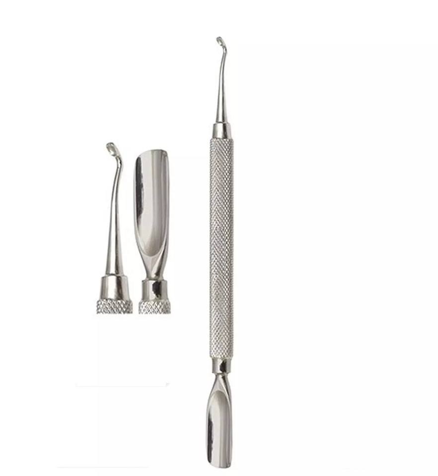 Grey Rocks-Nettoyeur de cuticules à manche en métal avec cuillère et brosse à ongles