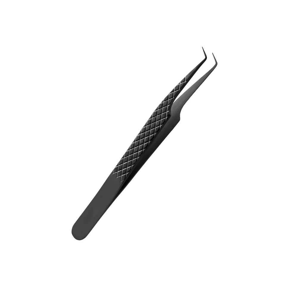 Pince à épiler pour cils en acier inoxydable à angle de 90 degrés de précision parfaite Gray Rocks, outil pour faux cils, pointe pointue, logo personnalisé