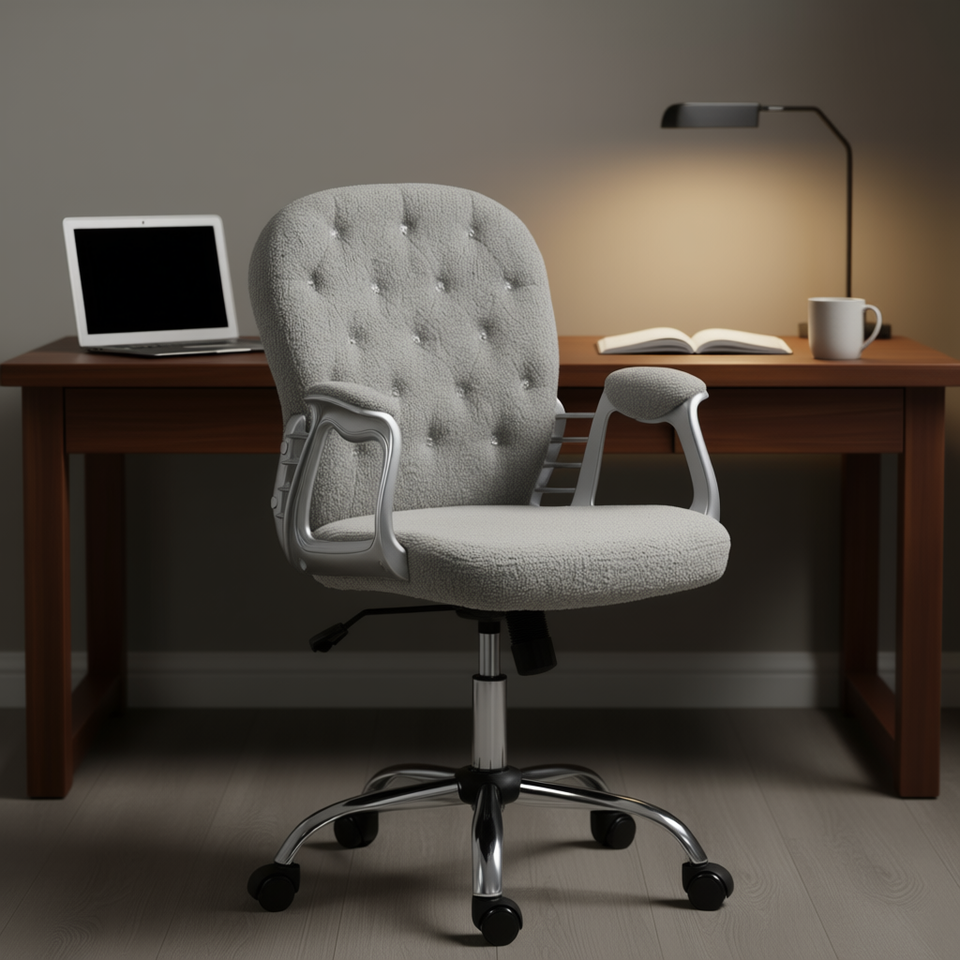 Chaise de bureau pivotante grise avec dossier capitonné, hauteur réglable, accoudoirs rembourrés, chaise de bureau à domicile