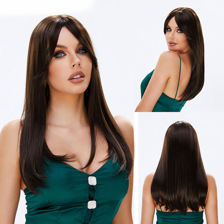 Perruque grise dames perruque de simulation cheveux longs et raides blancs femmes matures frange femmes haut de gamme perruque importée européenne et américaine