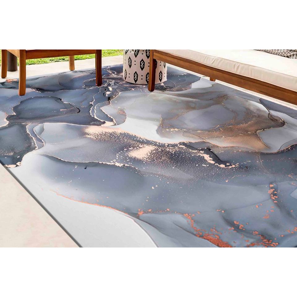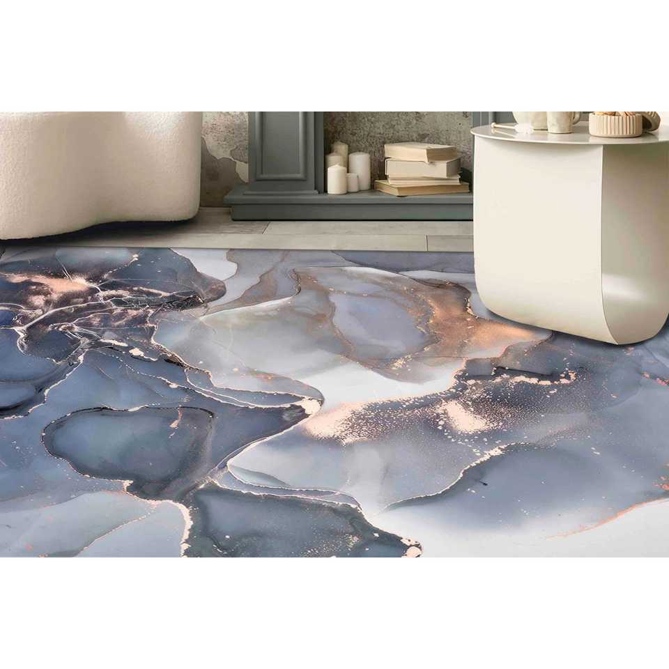 Tapis en marbre gris et or : motif moderne à l'encre d'alcool, tapis fin non tissé