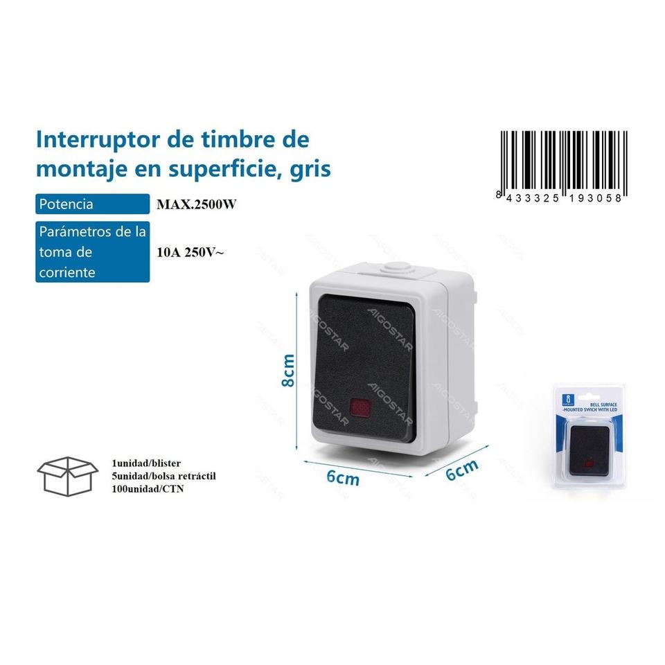 Interrupteur de sonnette gris monté en surface pour installation électrique