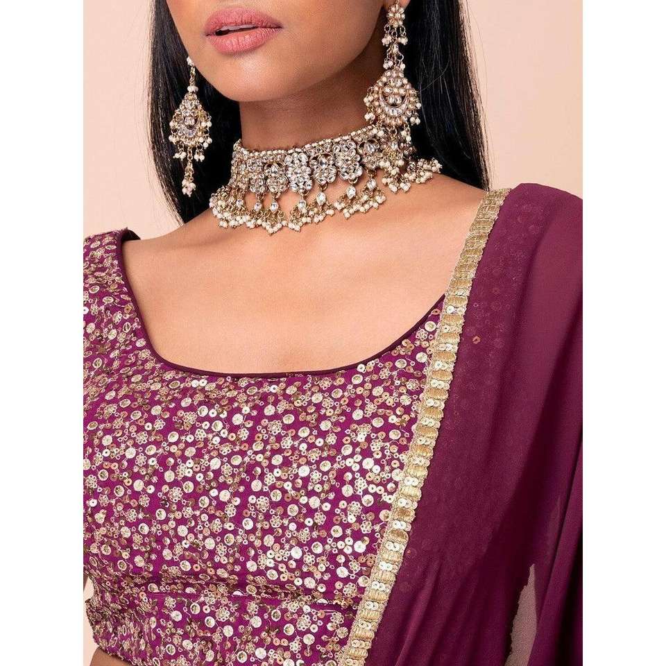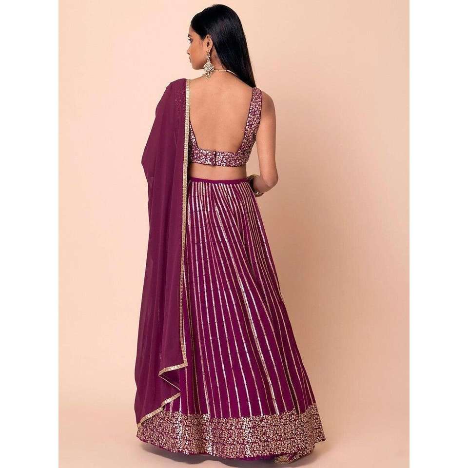 Great Dark Purple Sequin Georgette Engagement Wear Lehenga Choli