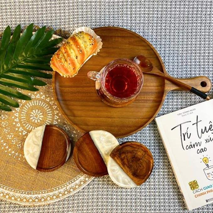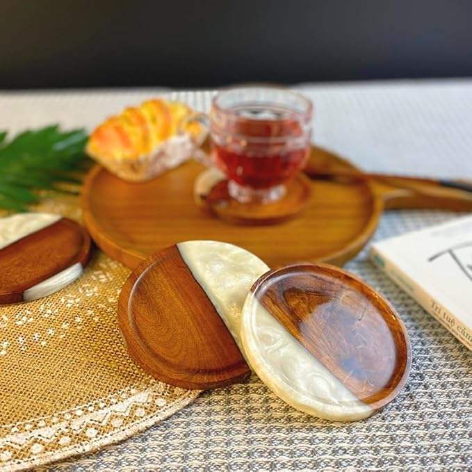 Dessous de verre en bois et en résine de forme carrée de grand design Vaisselle Tapis et tampons Maison & Hôtel Thé Jus Boisson Sous-verre de service