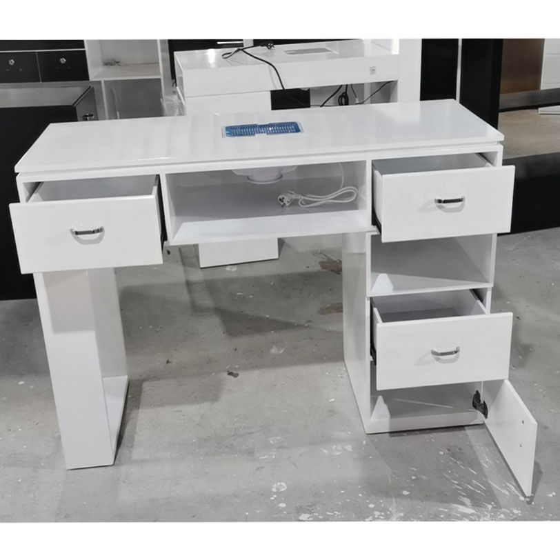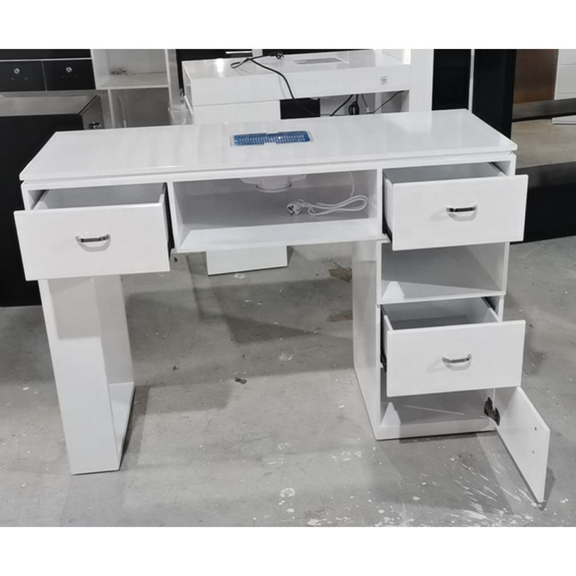 Grande usine Foshan Nouveau design Vente en gros Salon de beauté blanc moderne Table à ongles simple/double manucure avec ventilateurs