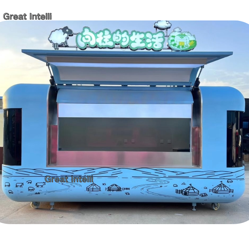 Grand véhicule mobile Intelli pour les entrepreneurs Petit chariot Fournisseur extérieur pour le vin Boissons Bar Snacks Promotionnel Restauration rapide