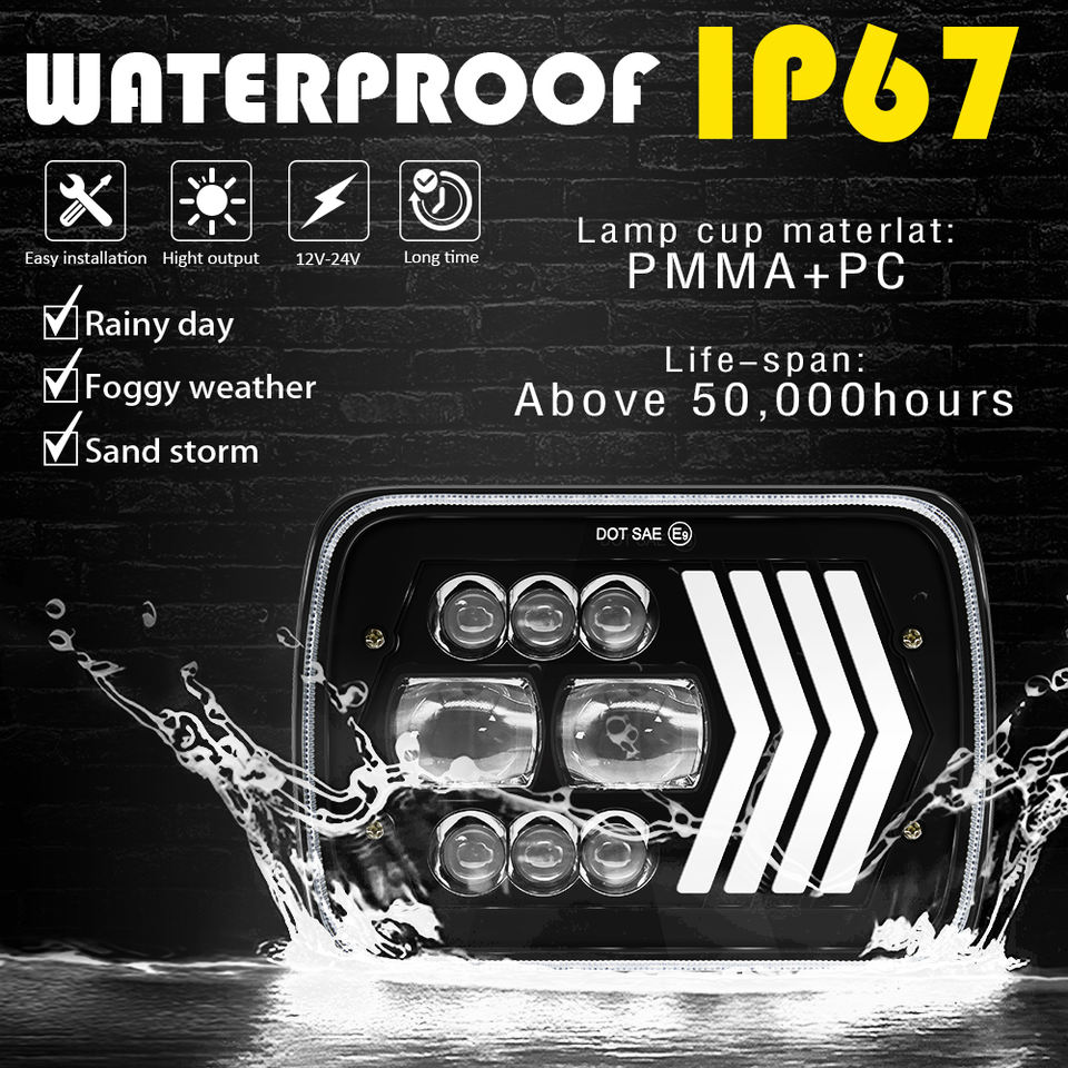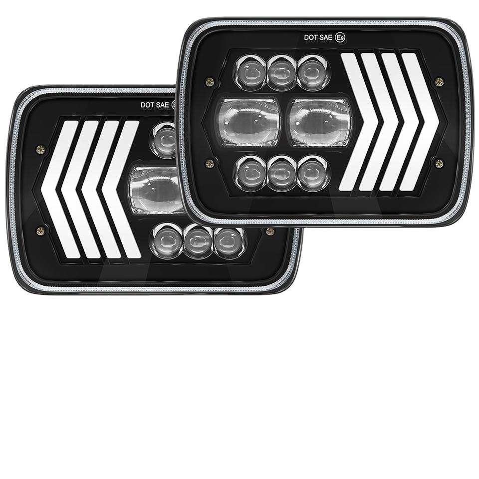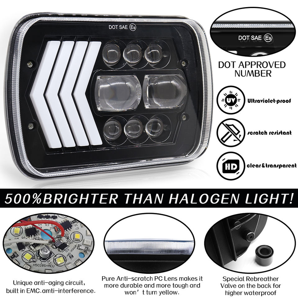 Phare LED carré 12V de grande qualité, 7 pouces, 75W, haute puissance, 8000LM, compatible universellement, gauche/droite, 3 flèches, blanc/ambre, DRL