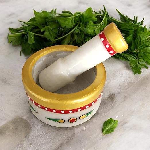 Mortier et pilon en marbre de grande qualité à prix raisonnable, conçus pour les besoins de la cuisine traditionnelle avec une finition polie