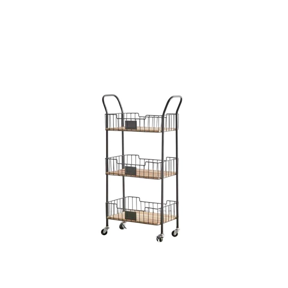 Chariot de rangement utilitaire en métal de grande qualité, 4 niveaux, fin et mobile, avec plateau en bois et roulettes verrouillables pour la cuisine