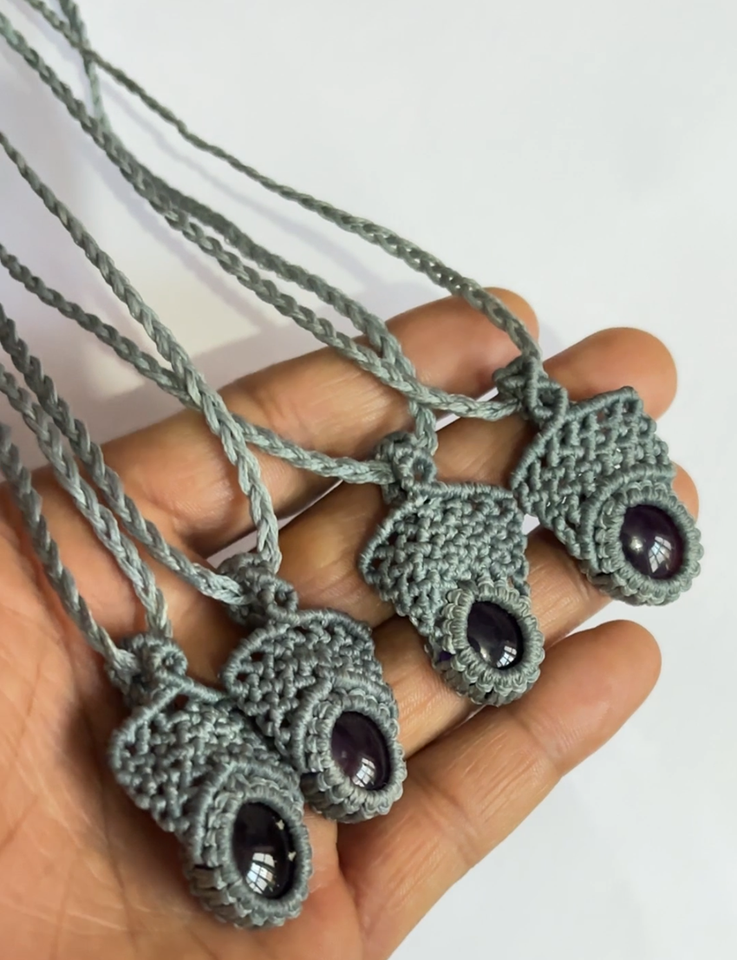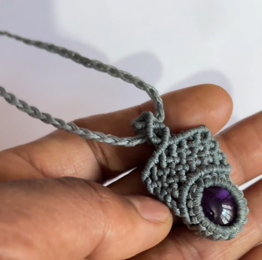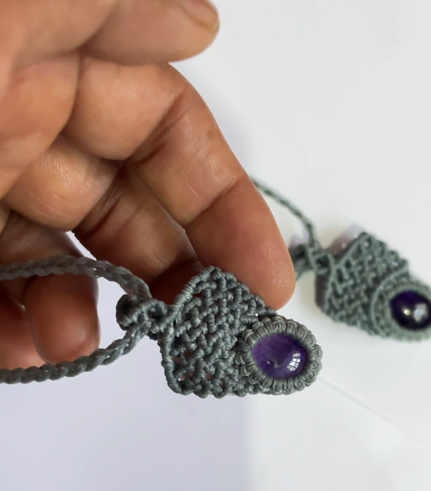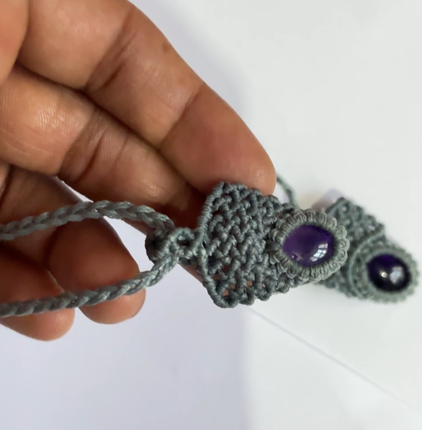 Anneau en macramé de grande qualité avec fil argenté, améthyste grise, fils de couleur gris, forme ovale 12x15 mm, serti clos, cadeau de bijoux