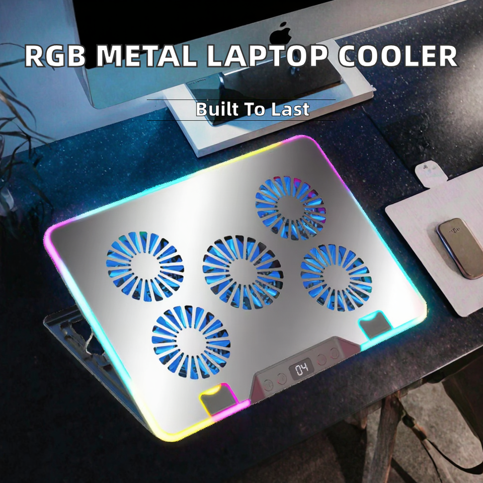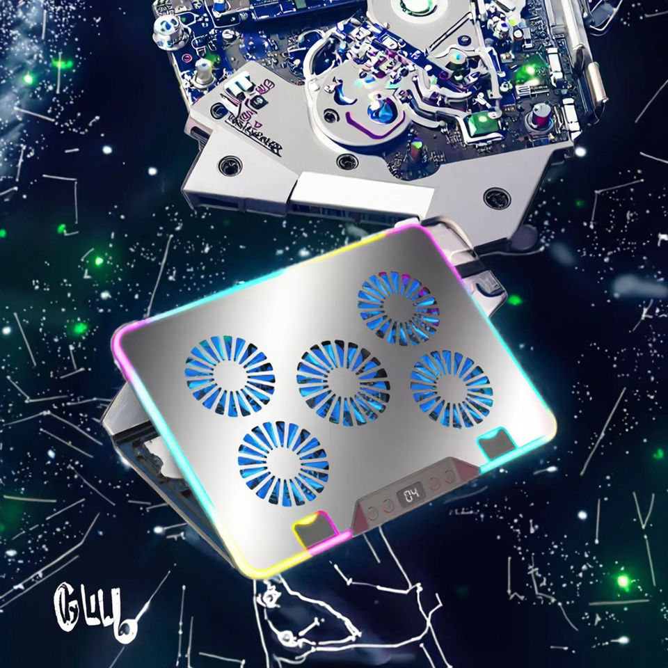Support de refroidissement pour ordinateur portable pliable à cinq ventilateurs, refroidissement par air, effet lumineux RGB en métal, haute performance, 17 pouces, en stock, best-seller Great Roc