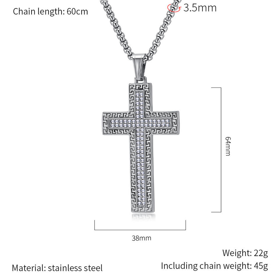 Grande Muraille Motif Religieux Zircon Croix Anti Non Ternir Sans Étanche En Acier Inoxydable Bijoux De Mode Pendentif Colliers Hommes