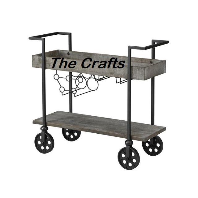 Chariot de service de la plus grande qualité avec porte-verres et porte-bouteilles en bois et en fer, chariot de service alimentaire à bas prix