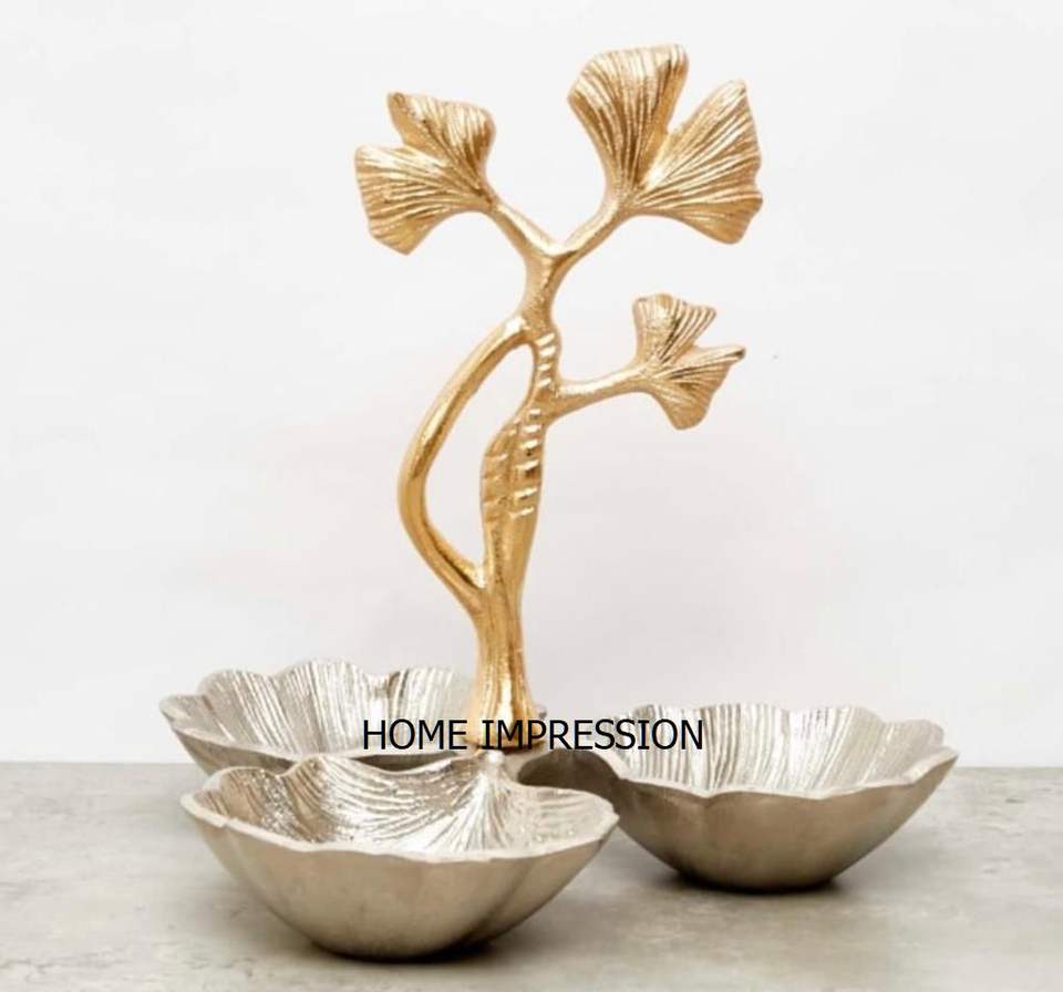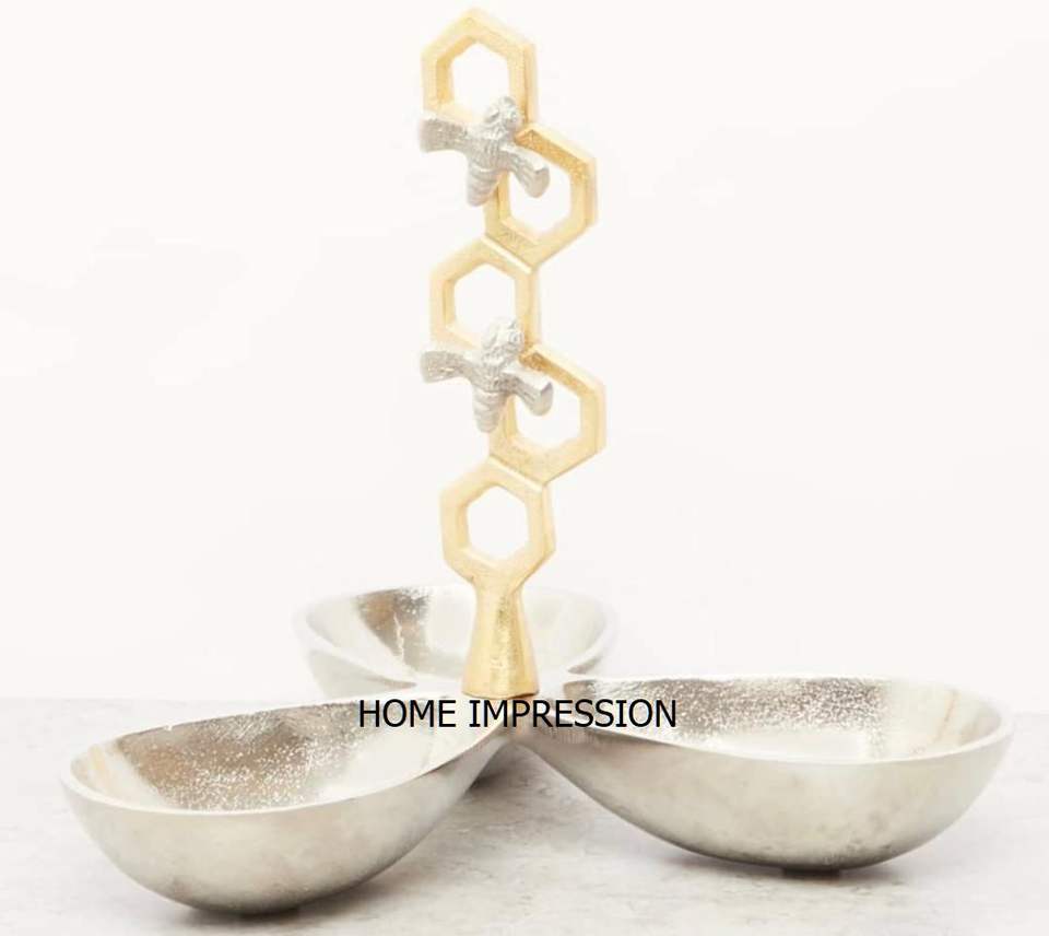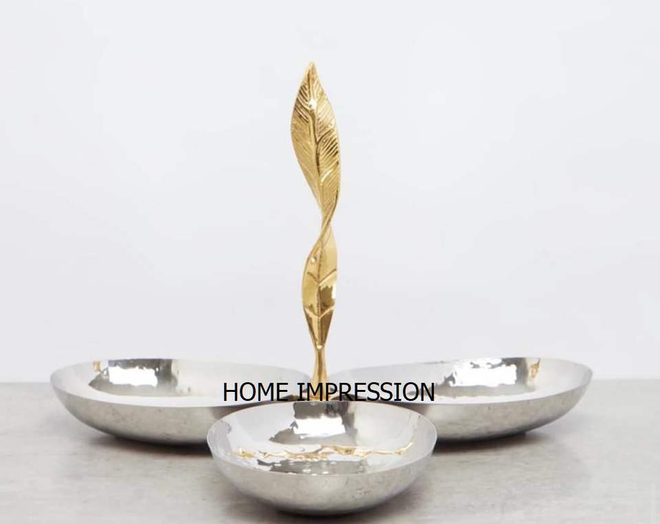 Bol à noix à 3 compartiments de la plus grande qualité fini argent Nouveau bol en métal au design unique Bol de service aux fruits secs et aux dattes à bon prix