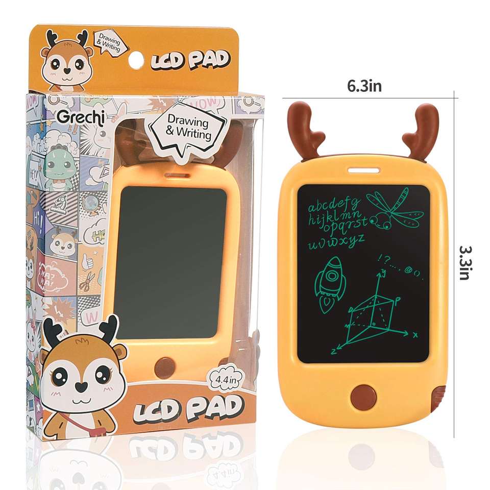 Grechi 4.4" Fawn LCD Digital Graffiti Tablet with Battery for 5-7 Year Olds-Educational Drawing Toy EN71 Certified