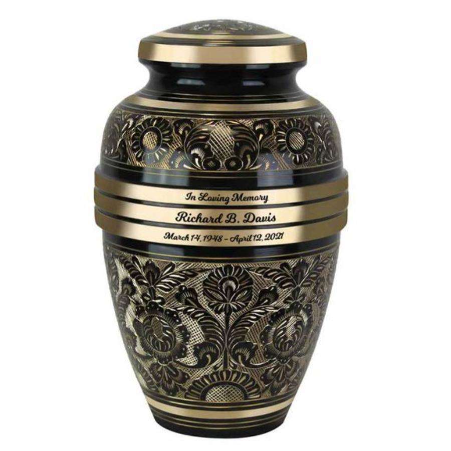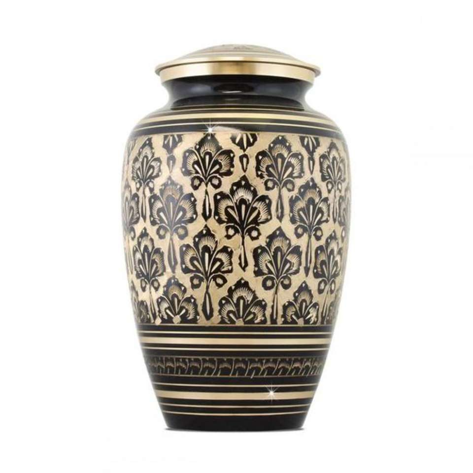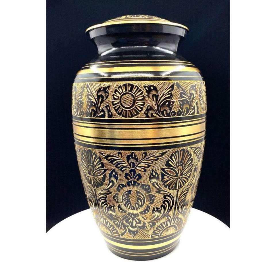 Product Name:Brass Adult Cremation Urn Milano Red & Gold Hand Engraved Floral Band