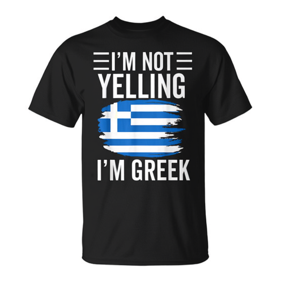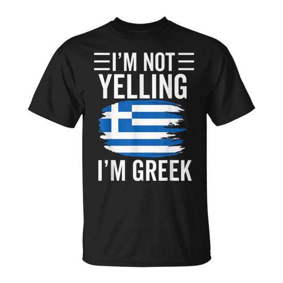 T-shirt promotionnel unisexe avec carte du drapeau grec et motif « Je ne crie pas, je suis Grec »