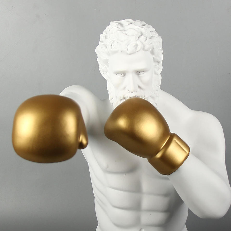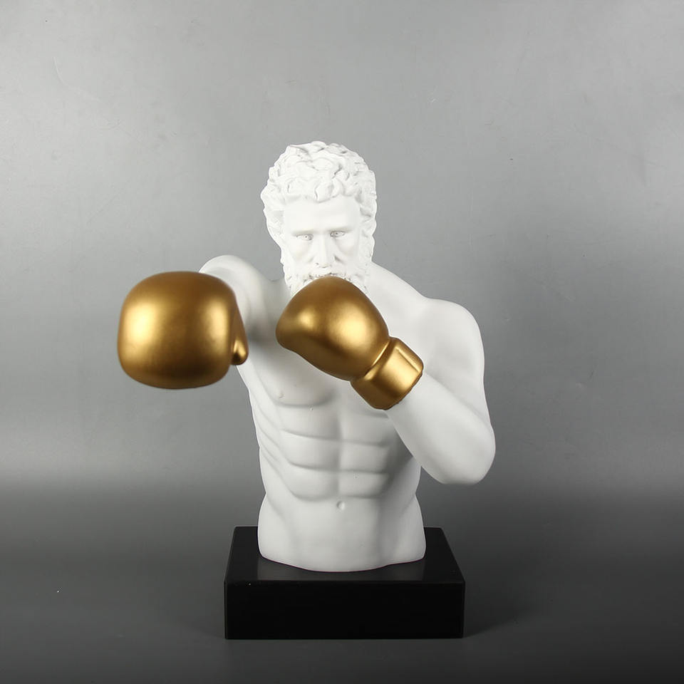 Sculpture de buste de boxer de style grec avec des gants de boxe en or Statue en résine moderne pour la décoration intérieure Art Display Man Cave Gift
