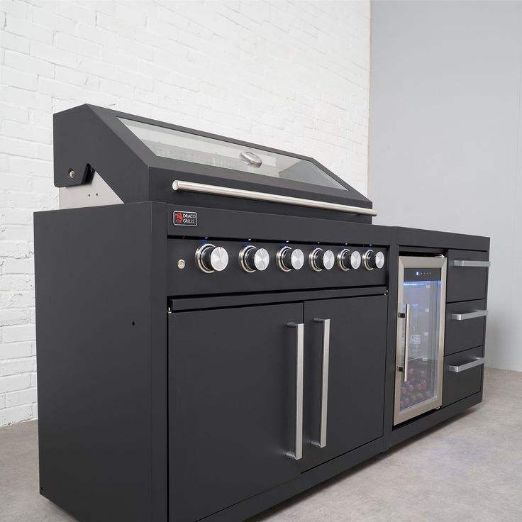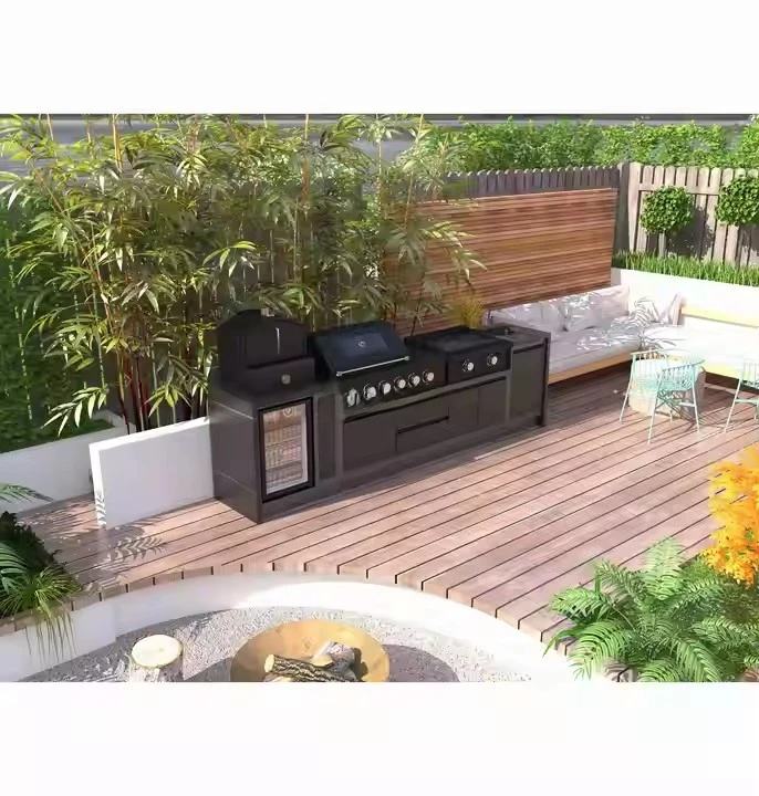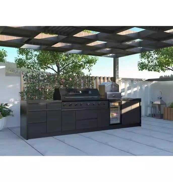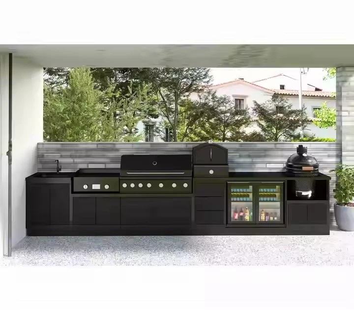 Meubles de cuisine d'extérieur portables en acier inoxydable de style grec, ensemble d'armoires de cuisine extérieures brillantes sans poignées