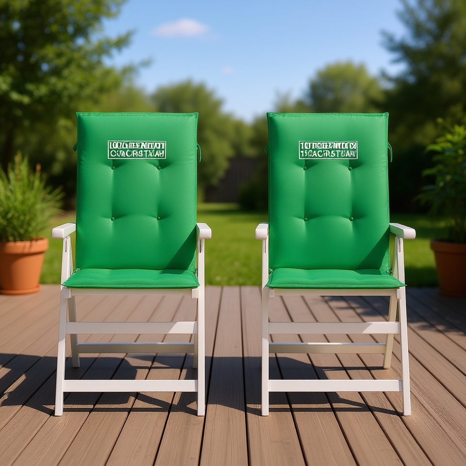 Coussin de chaise d'extérieur vert 100 % polyester, dossier haut, lot de 2, amovible, lavable, rectangulaire, uni, toutes saisons