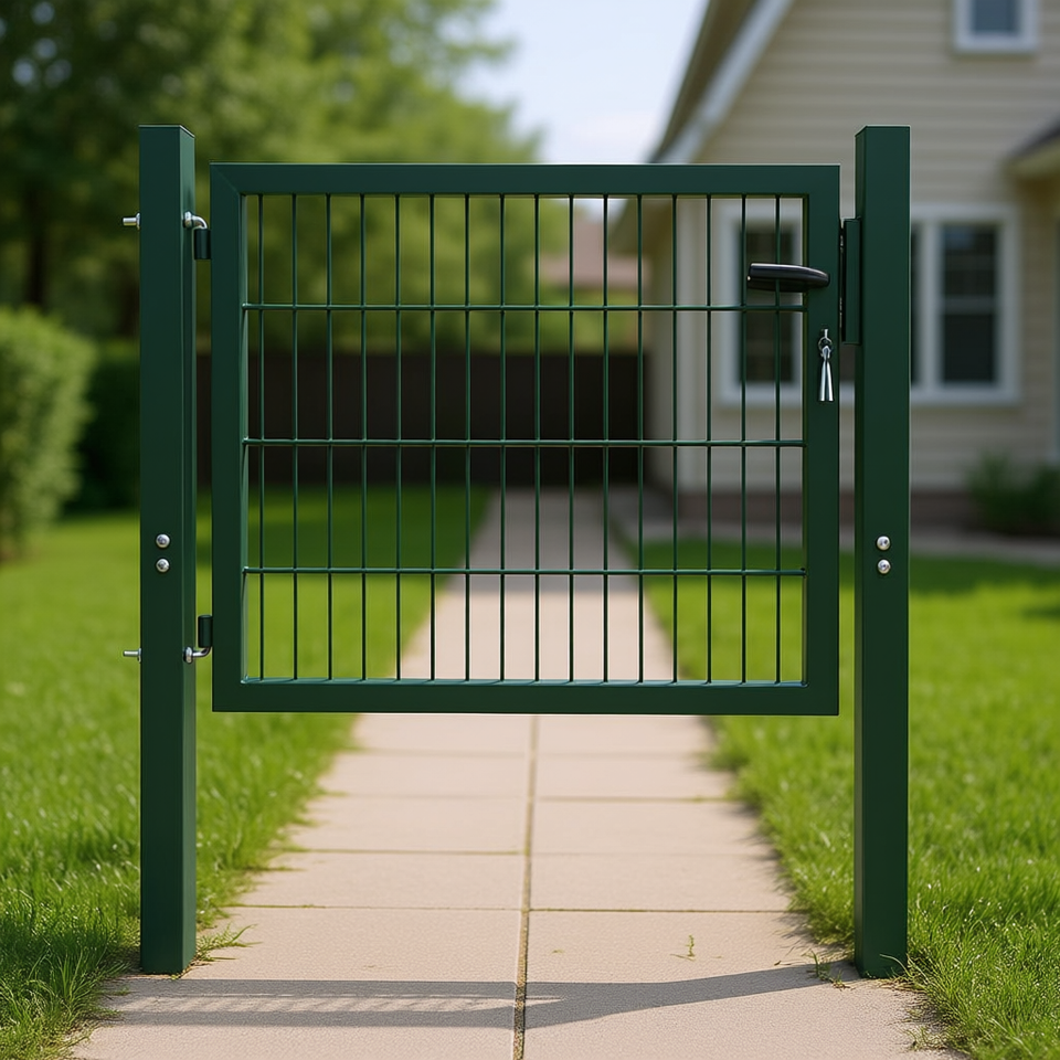 Portail de clôture vert 41,7x51,2 pouces, à ouverture manuelle, extérieur, durable, revêtement poudré, design minimaliste