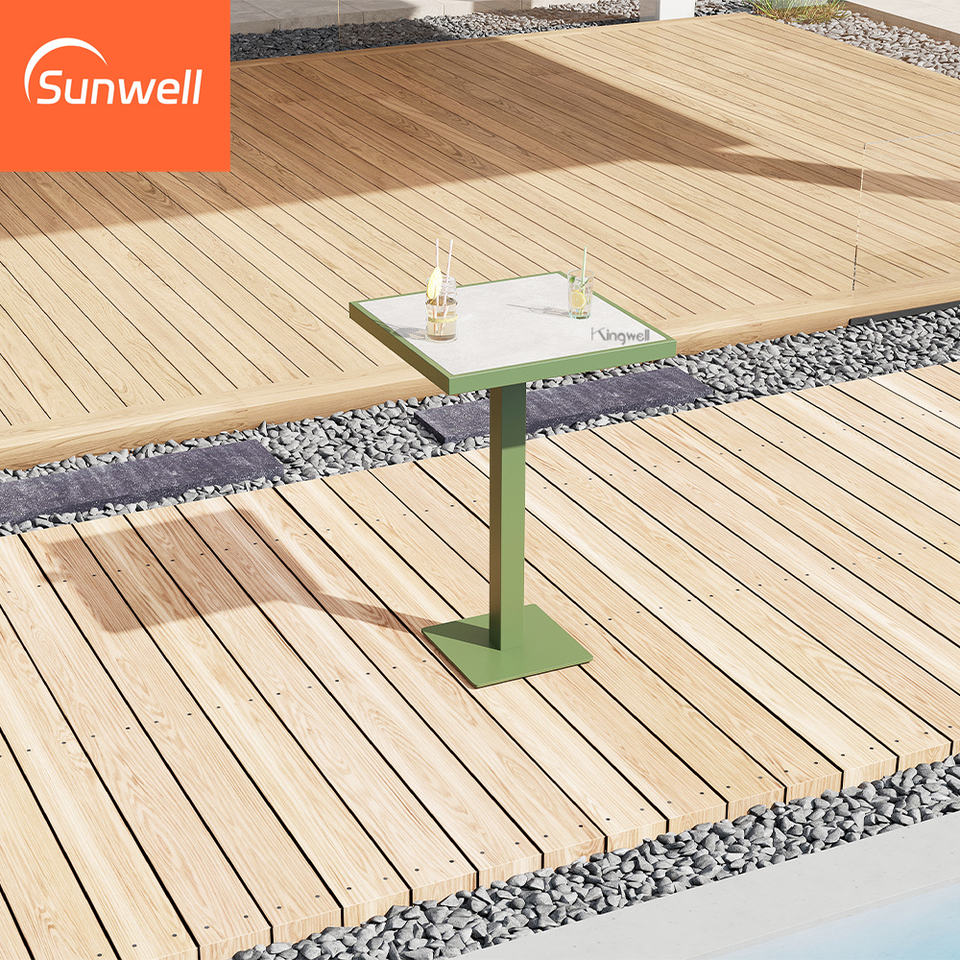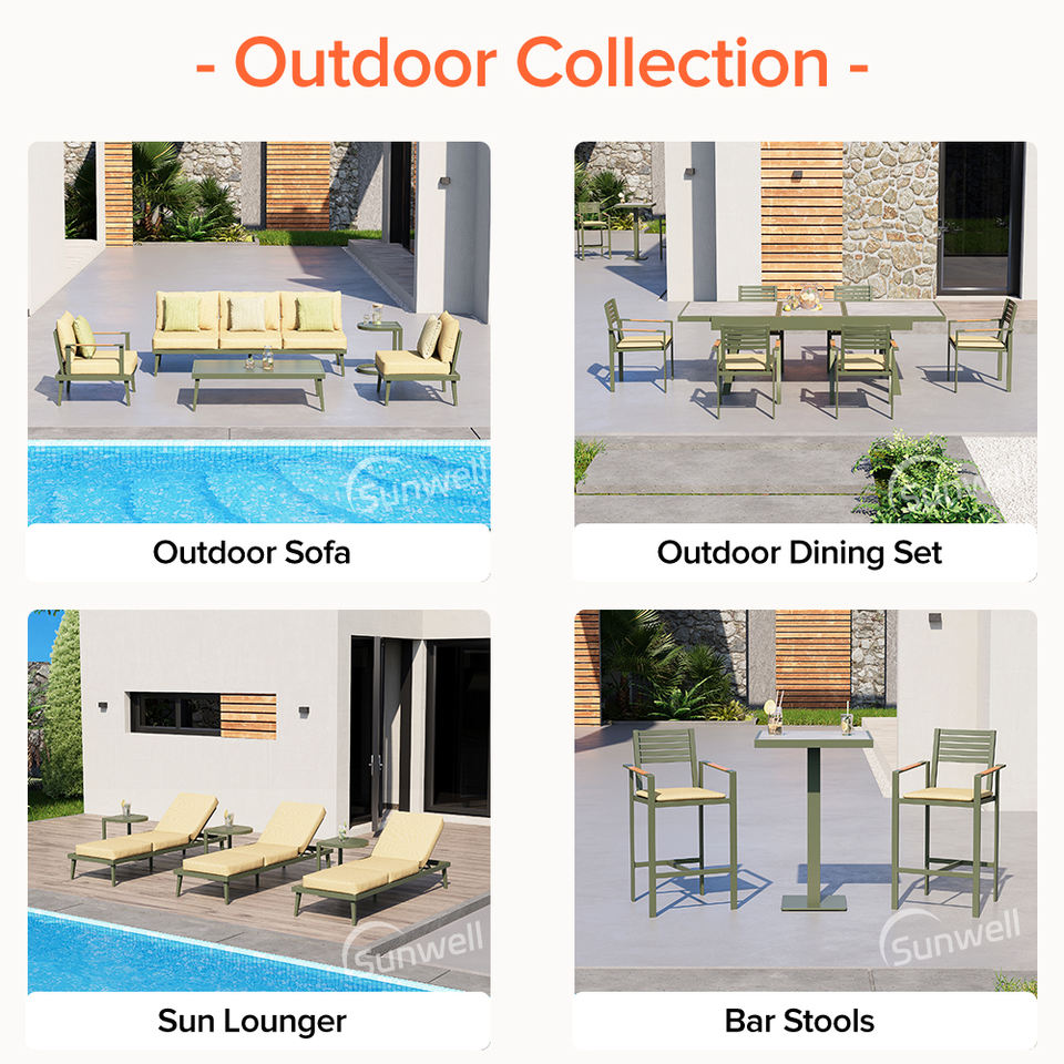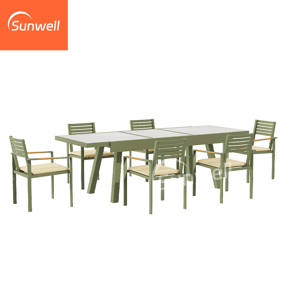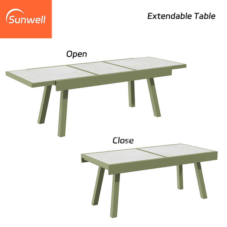 Ensemble de mobilier d'extérieur en aluminium vert avec revêtement en poudre, table de salon extensible, table à manger en pierre frittée sur le plateau