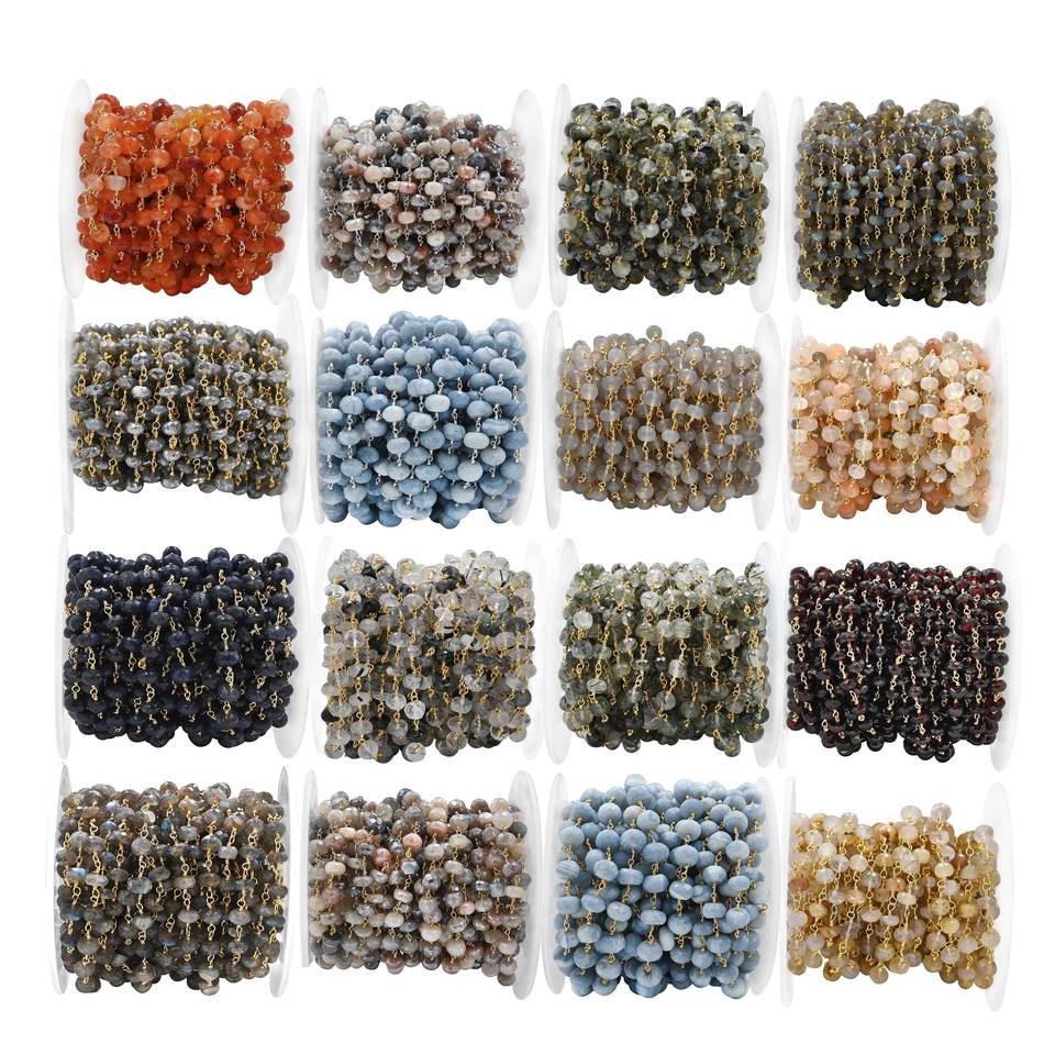 Product Name::Green Amethyst Brass Gold Plated Rosary Wire Wrapped Chain