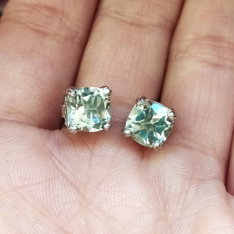 Keyword:Green Amethyst Stud With Sparkling Green Amethyst Stones