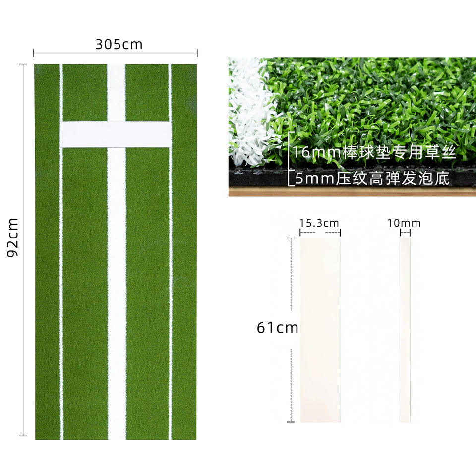 Tapis de lancer en gazon artificiel vert 92x305cm, base en caoutchouc PPEVA pour entraînement de softball et de baseball