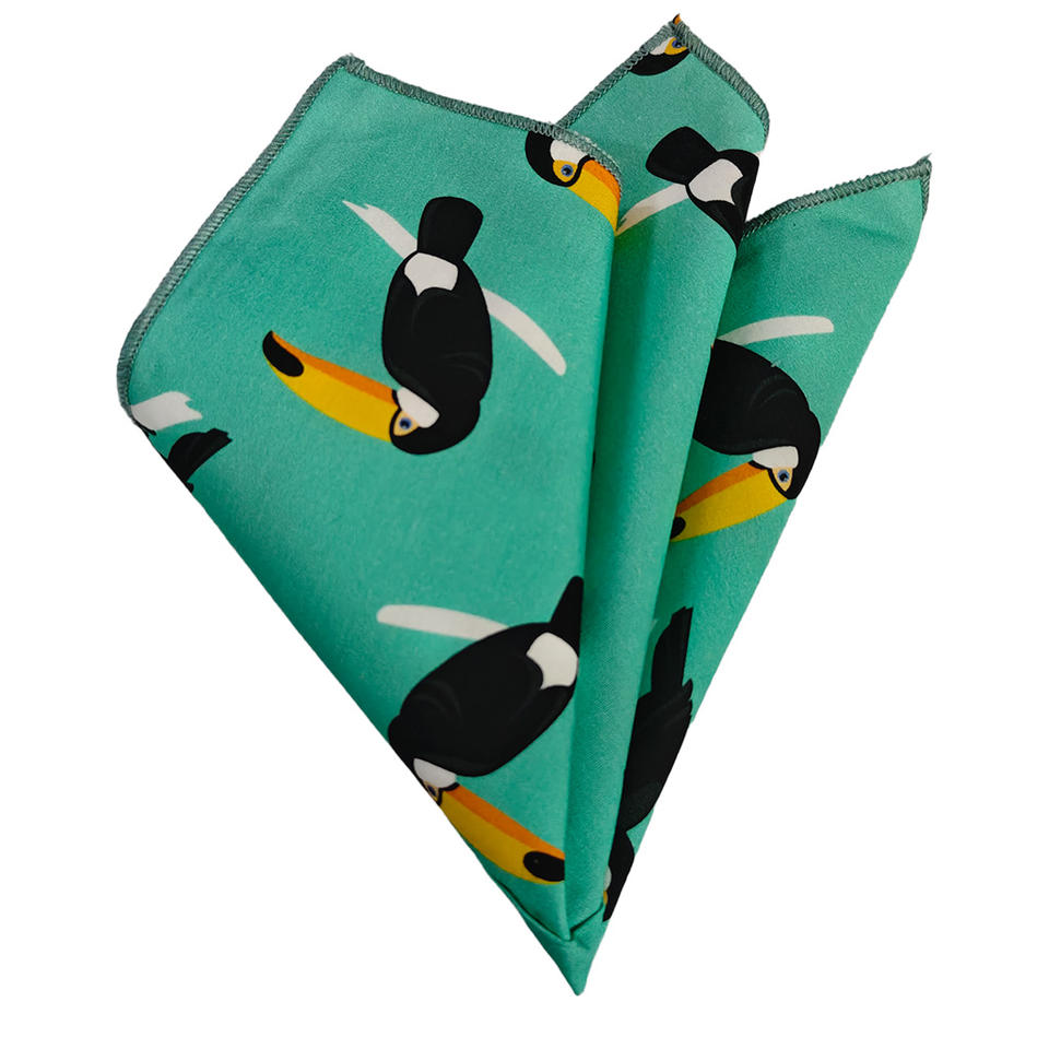 Green Black Crow 100% Cotton Certified Organic Pocket Square with Center Stitching
