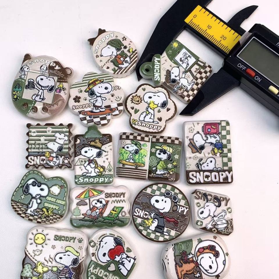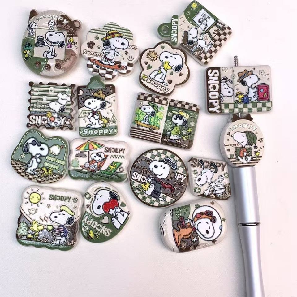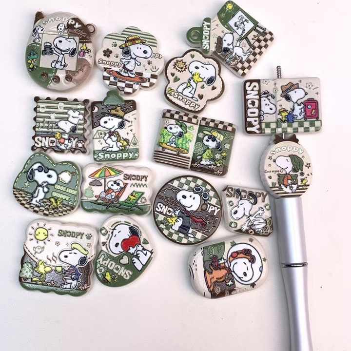 Chaîne de téléphone portable en perles à faire soi-même, imprimé en relief double face Snoopy Cactus vert, accessoires pour stylo à perles