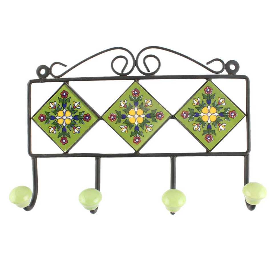 Suspension murale en céramique pour vêtements, suspension de porte, fleurs vertes, artisanat indien Durable, 1 pièce