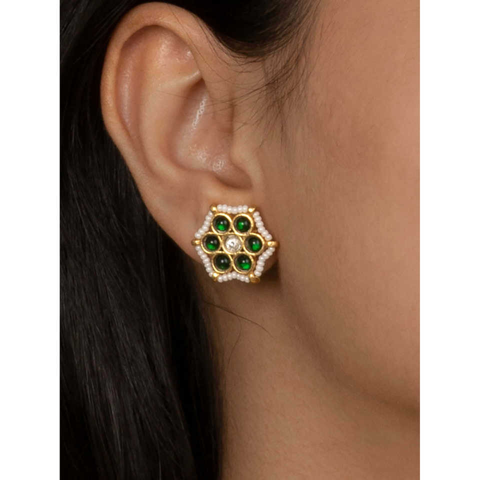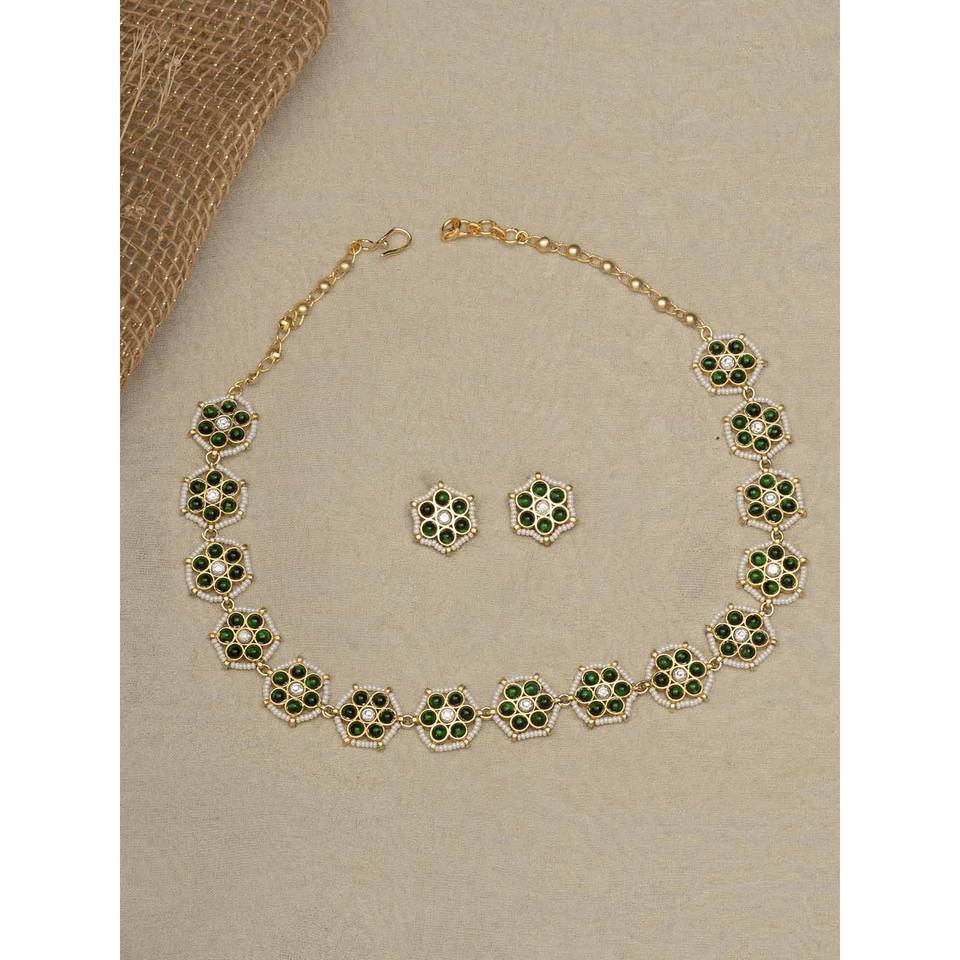 Ensemble de bijoux fins MR-S621GR plaqué or de couleur verte, collier et boucles d'oreilles Mishr, fabrication indienne