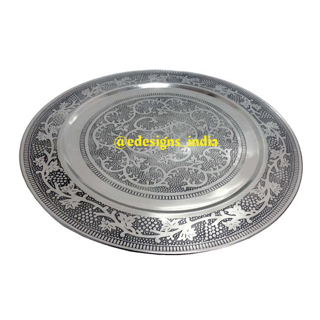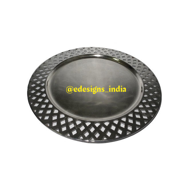 Plaque de chargement en métal de couleur verte, décoration de fête et de mariage, faite à la main, sous-assiette, nouvelle arrivée, assiette de service personnalisée de styliste