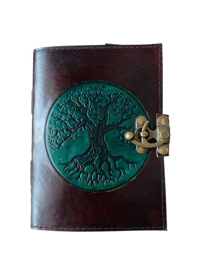 Carnet de Journal à couverture rigide en cuir véritable de couleur verte, arbre de vie rond, couleur marron gaufré, avec 120 pages blanches vierges