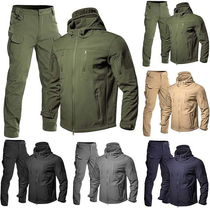 Veste et pantalon tactiques imperméables de sport de plein air en softshell de couleur verte, ensemble de chasse