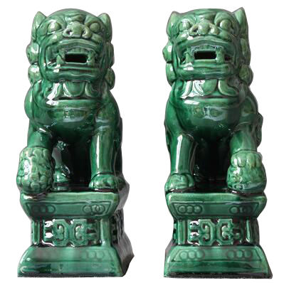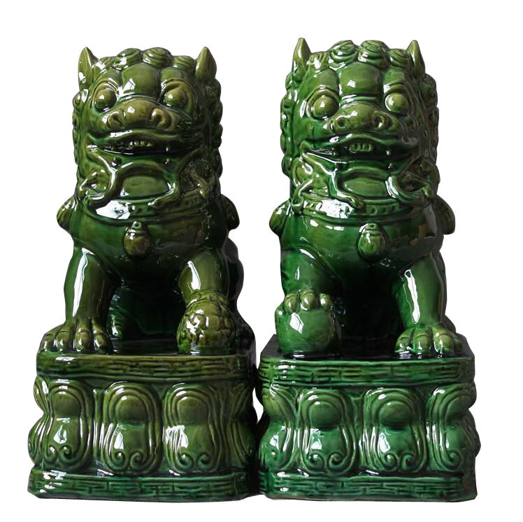 Pot en céramique émaillée tricolore de couleur verte de la dynastie Tang, statue de Fu, décoration d'intérieur, Feng Shui chinois classique, chien Foo