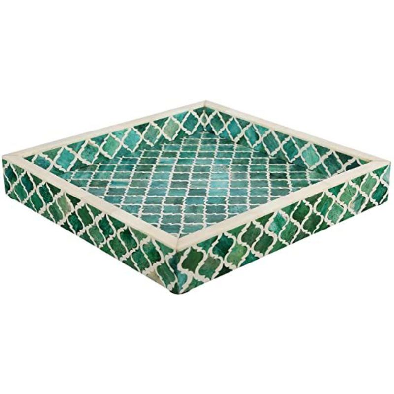 Plateau de service carré en bois de couleur verte pour la maison, les hôtels et les restaurants, pour servir des aliments, des collations et des boissons, lot de 3