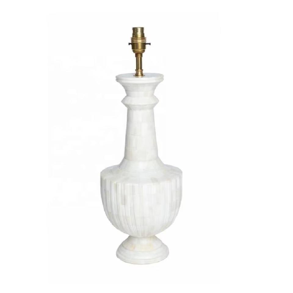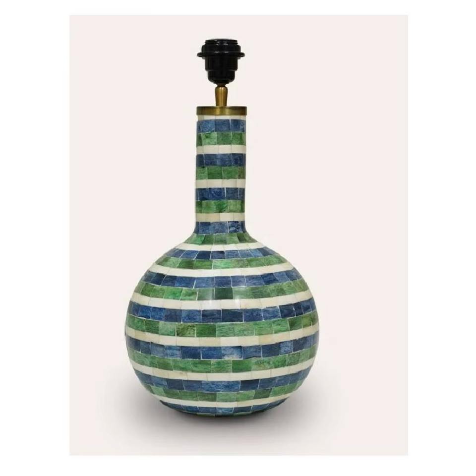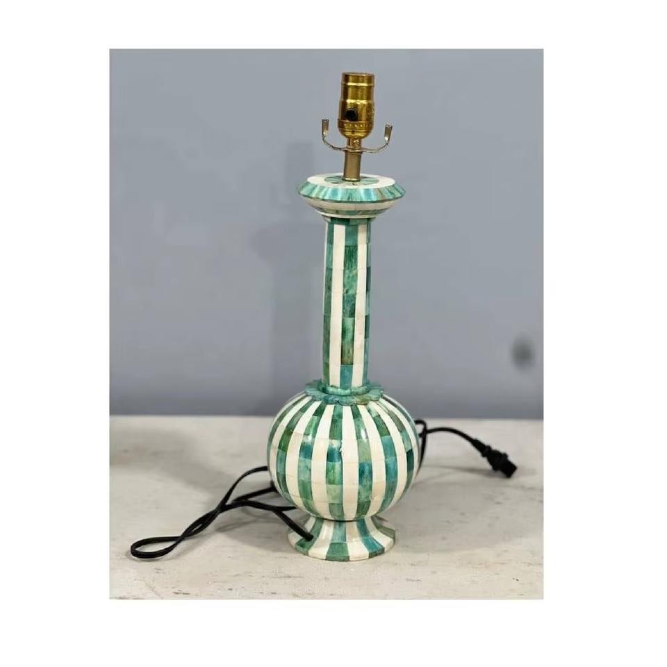 Green & Cream Bone Inlay Table Lamp Surai Style Elegant Nightstand Lamp with Intricate Inlay Work Lighting for Living Room Decor
