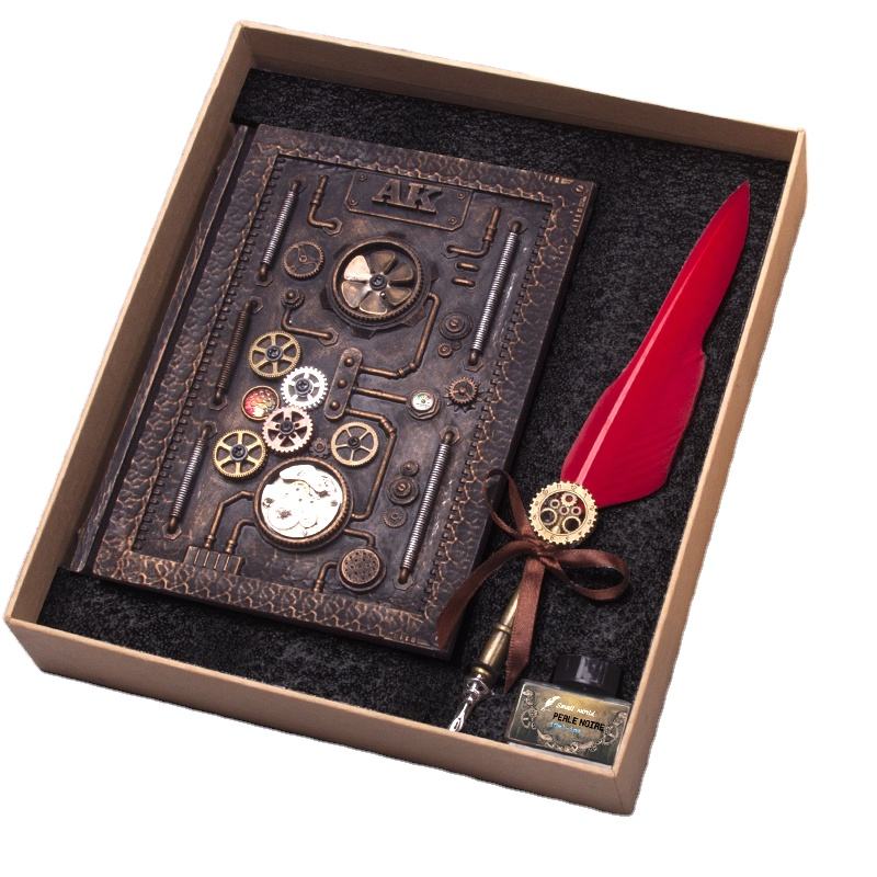 Ensemble stylo plume et carnet Green Dragon Eye, plume en plume d'oie véritable naturelle, encre à plume, ensemble de stylos de calligraphie anglaise