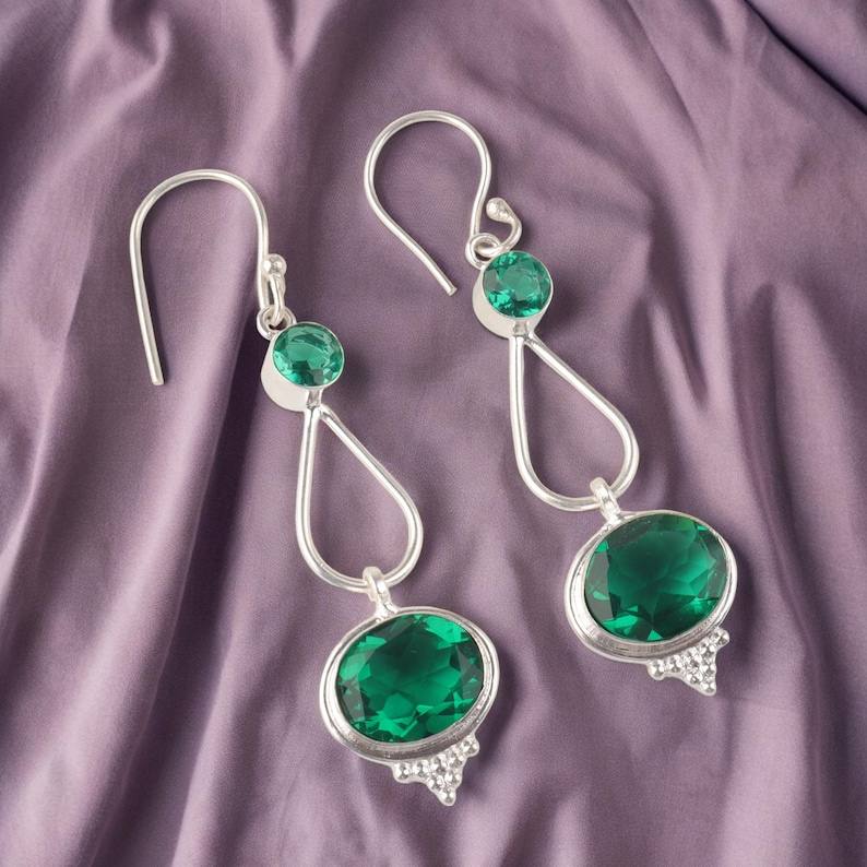 Handmade 925 Sterling Silver Drop Earrings Green Emerald Gemstone Heart Shaped Jewelry Women's Wedding Gift