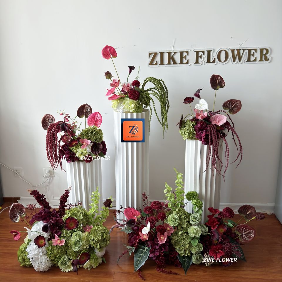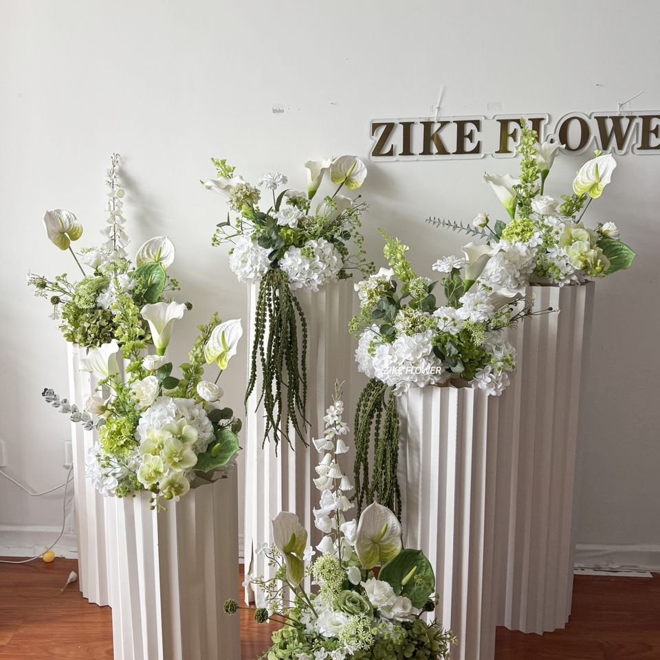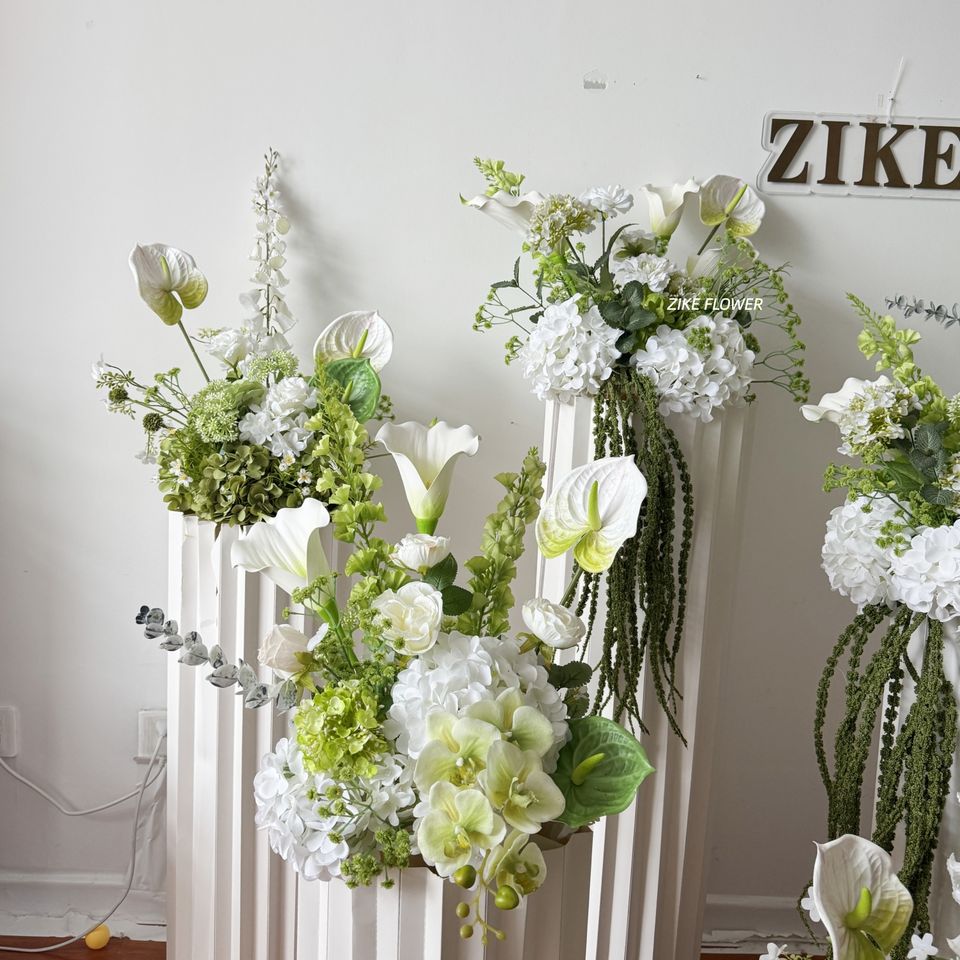 Décoration de scène d'événement Fleurs vertes Bouquet de mariage artificiel en hortensias Calla lilies artificielles Anthurium Centre de table en fleurs