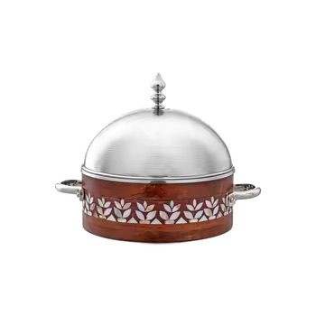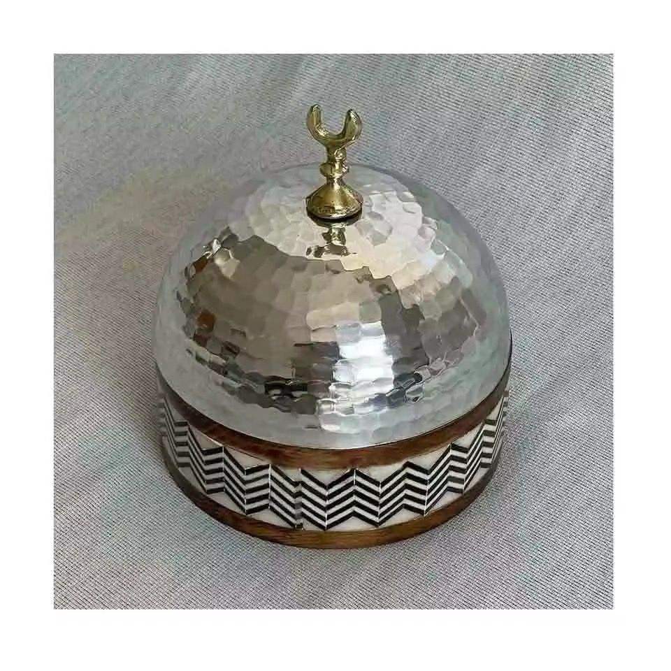 Casserole géométrique verte avec incrustation osseuse et couvercle en acier poli, chauffe-plats haut de gamme pour collection de cuisine moderne et minimaliste