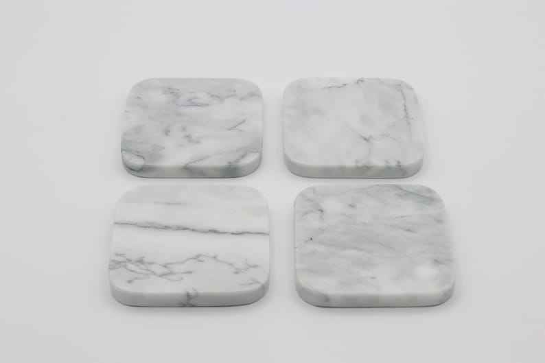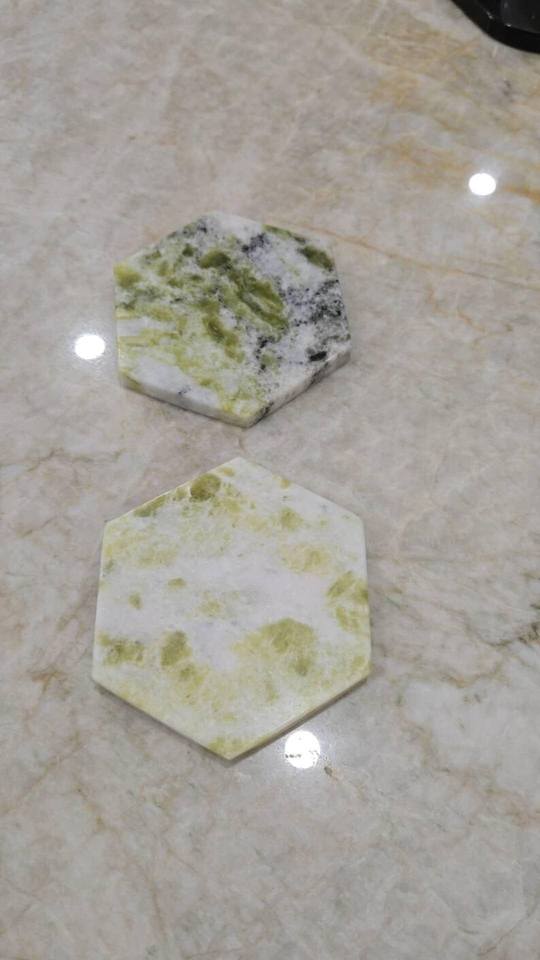 Green Grey White Marble Drink Coaster Handmade Natural Stone Decor