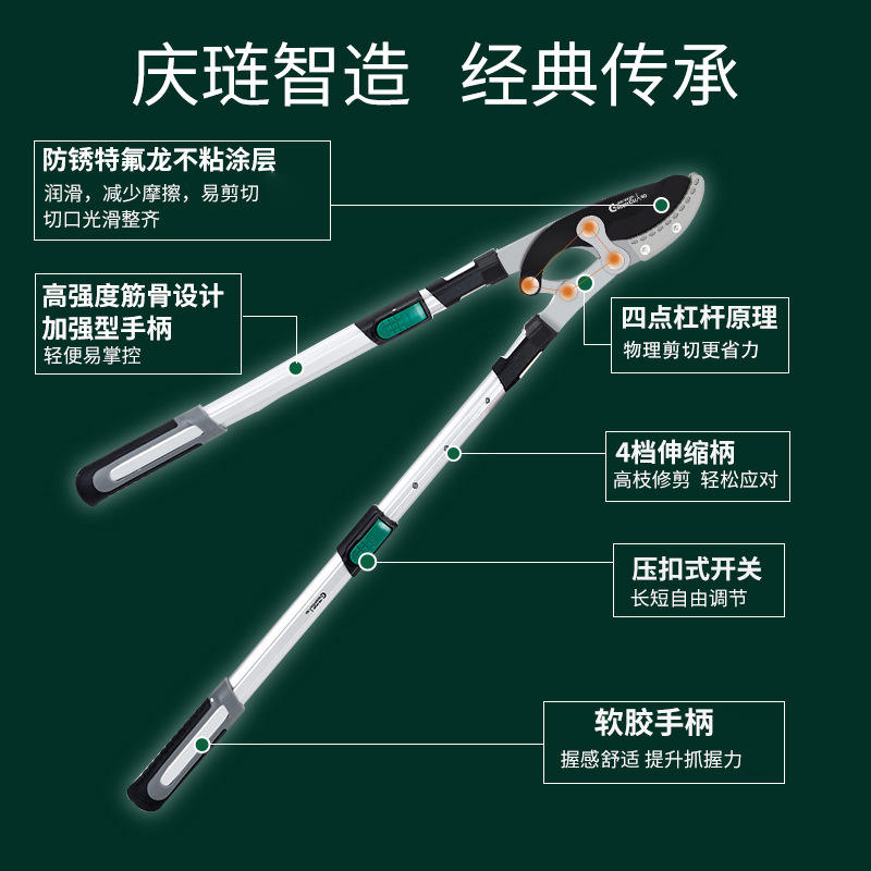 Sécateur télescopique Green Guard 30-50 mm en acier inoxydable, outil de jardinage robuste pour la taille des arbres